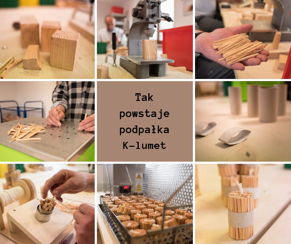 Proces produkcji podpałki stworzony jest z myślą o różnych niepełnosprawnościach i dostosowany tak, aby umożliwić samodzielne wykonywanie poszczególnych etapów. Wszystko zaczyna się od klocka drzewa żywiczego, a kończy na wiązce drewnianych patyczków o odpowiedniej grubości.